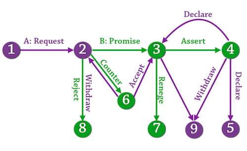Structure of a Conversation for Action. All states manifest in pull requests.